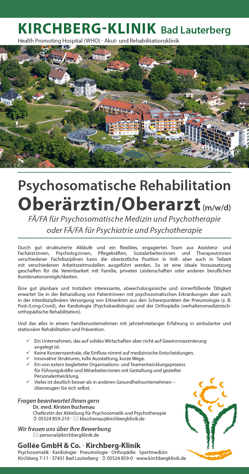 In jedem Segment der Akut- und Rehabilitationsmedizin sowie im Medizinischen Versorgungszentrum am Kirchberg gibt es jeweils langjährig erfahrene Fachärzte*innen für Kardiologie, Pneumologie, Innere Medizin, Orthopädie, Psychiatrie und Psychosomatische Medizin und natürlich Allgemeinmediziner. Flache Hierarchien und gute Kooperation werden gestaltet